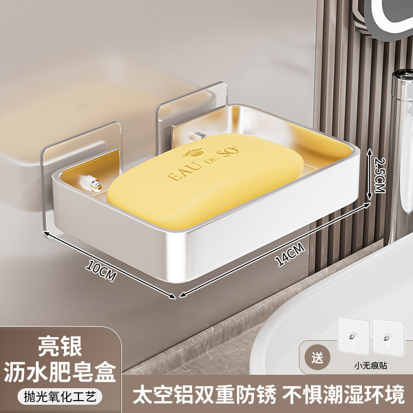 Bathroom soap box space aluminum toilet soap box non-perforated drainable sink wall-mounted storage soap holder.
