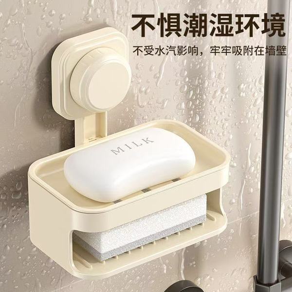 Suction Cup Soap Dish Drain Wall-Mounted Soap Dish Bathroom Bathroom Double-Layer Storage Rack Strong Adhesive Without Punching